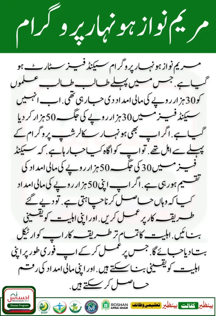 Punjab Maryam Nawaz has started distributing financial aid money in the second phase of the Honahar Scholarship Program. If you want to get financial aid money in your second phase. Then follow the given procedure. And ensure your eligibility. There are many students. Who are facing difficulty in getting financial aid money in the second phase of the Honahar Scholarship? So you don’t need to panic.