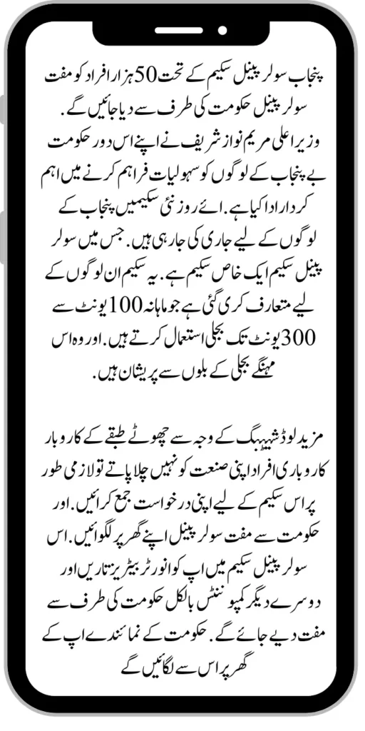 Under the Punjab Solar Panel Scheme, 50 thousand people will be given free solar panels by the government. Chief Minister Maryam Nawaz Sharif has played an important role in providing facilities to the people of Punjab during her tenure.