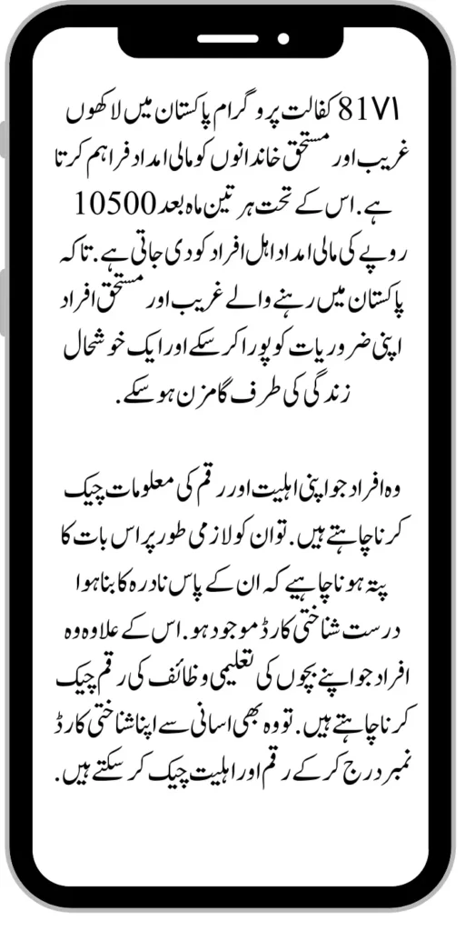Individuals who want to check their amount information through the 8171 BISP portal after checking their eligibility. So they can check easily. For this, you will go to UppurTal enter your identity card number and check your amount.