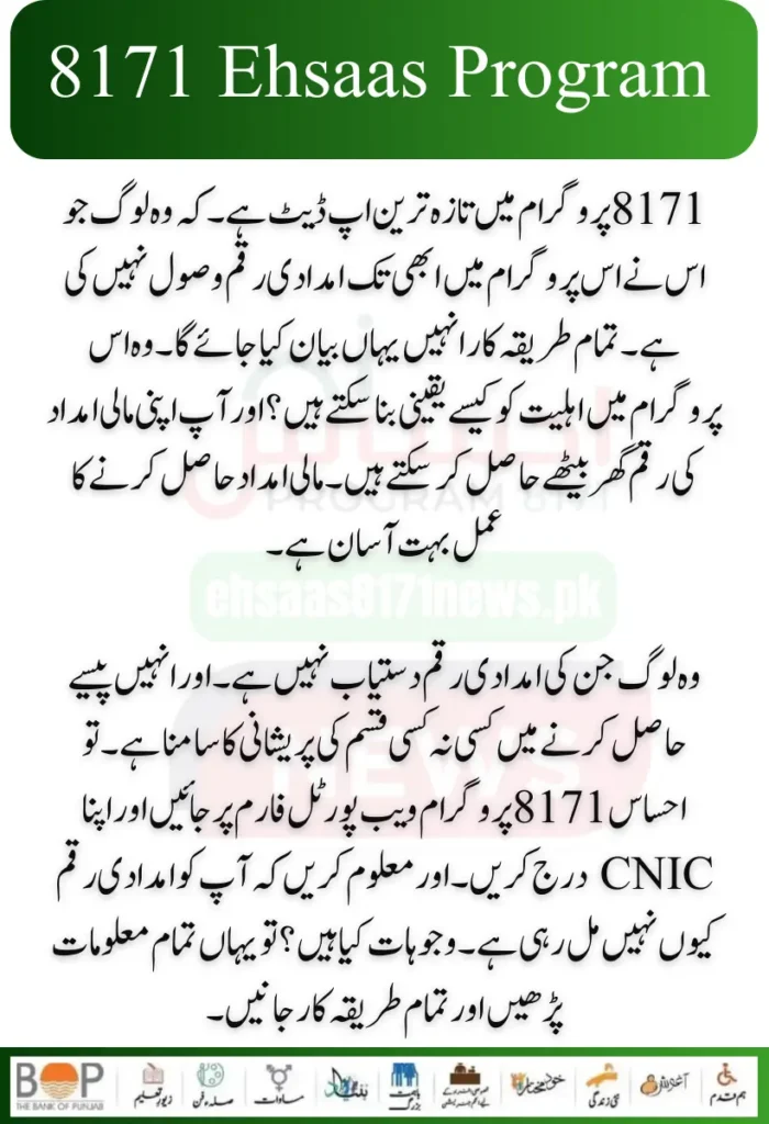 Those people whose aid money is not available. And they are facing some kind of problem in getting money. So go to the Ehsaas 8171 program web portal form and enter your CNIC. And find out why you are not receiving the aid amount. What are the reasons? So read all the information here and know all the procedures.