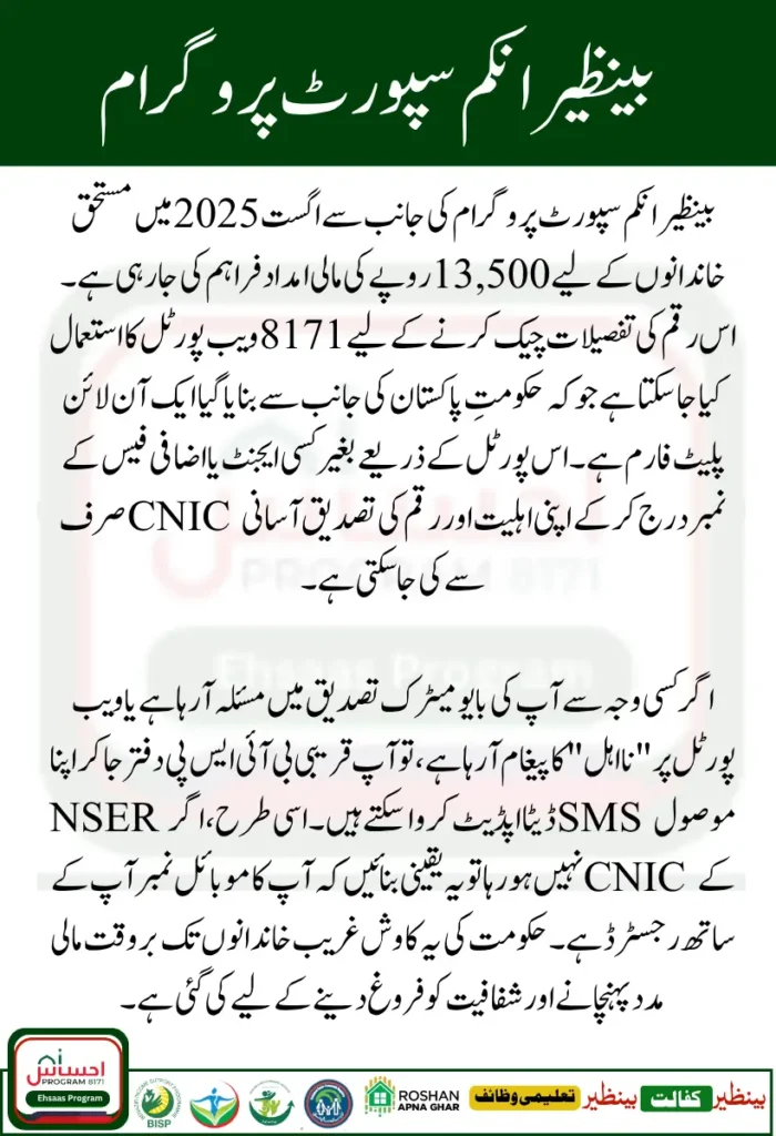 8171 Web Portal and BISP Rs 13500 payment (August 2025)