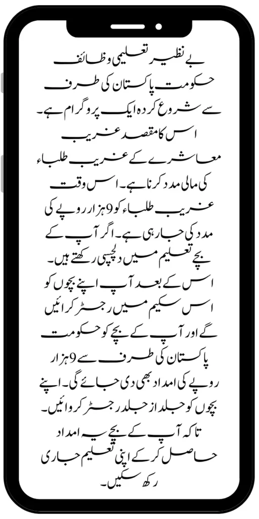 Then you will register your children in this scheme and your child will also be assisted 9 thousand rupees by the Government of Pakistan. Register your children as soon as possible. So that your children can continue their education by receiving this aid.