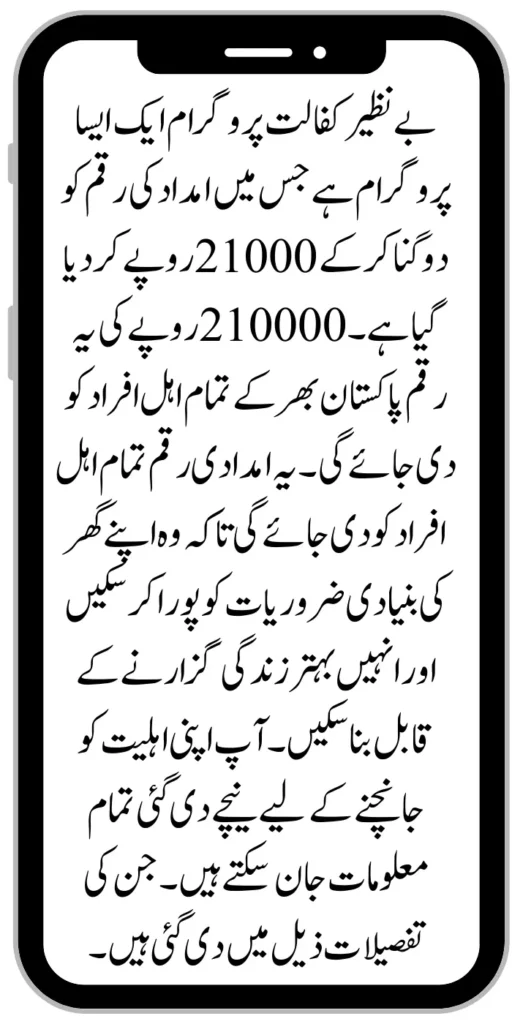 Benazir Kafaalat program is a relief program which is started by the government of Pakistan. The Benazir Kafaalat program has announced a double payment of 21000 rupees which will be given to all eligible people across Pakistan. The complete method of eligibility criteria has been given above, after which you can easily get this assistance amount by completing the registration process after knowing the necessary documents.