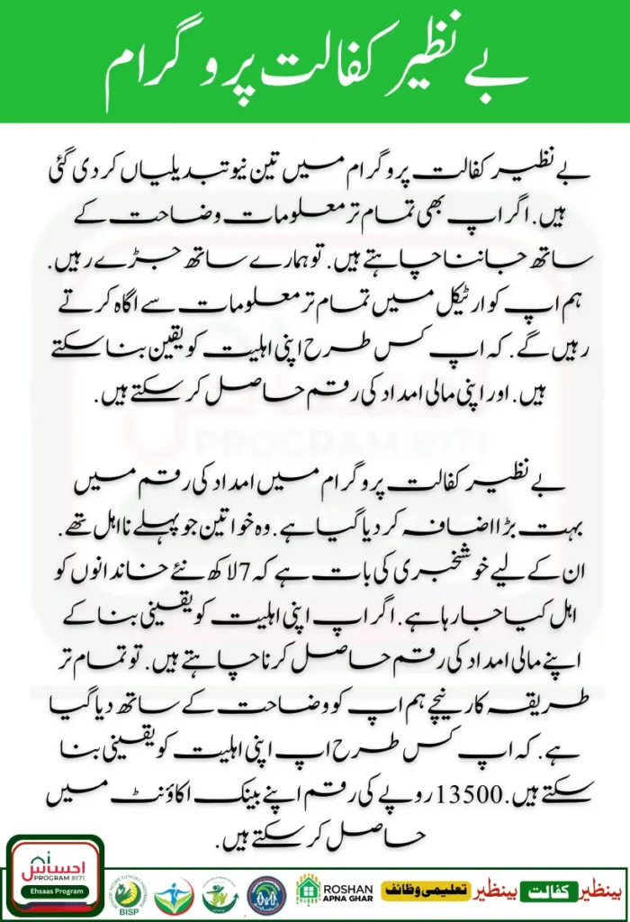 Three new changes have been made in the Benazir Kafaalat Program. If you also want to know all the information with clarity. Then stay connected with us. We will keep you informed with all the information in the article. How you can ensure your eligibility. And get your financial assistance amount. The amount of assistance in the Benazir Kafaalat Program has increased greatly.