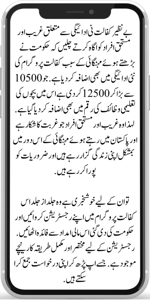 Let’s inform the beneficiaries about the Benazir Kafaalat payment that the government has also increased the new payment of the Kafalat program due to rising inflation, from 10500 to 12500, and the amount of educational scholarships for children has increased.