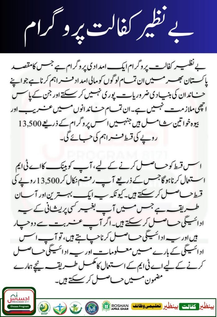 Benazir Kafaalat Program has increased the quarterly instalment for all eligible and poor people across Pakistan. The current payment of quarterly instalment is Rs. 13,500 which you can easily get through ATM bank. All this information and the procedure in which you can get the instalment of Rs. 13,500 in an easy way is given below.