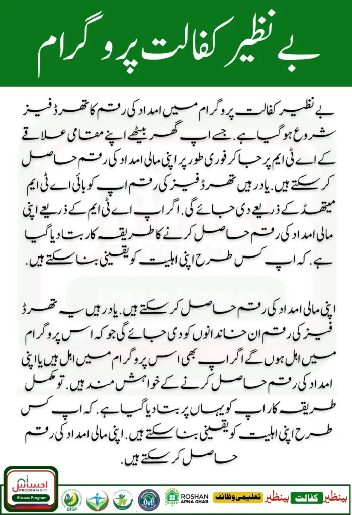 To get the third phase assistance amount in the Benazir Kafalat Program, complete information has been given to you here. Which families will be eligible in the third phase? You have been told.