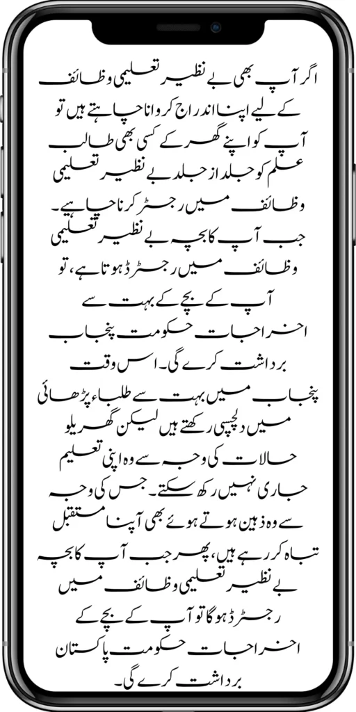 Many students in Punjab are interested in studies, but due to their home conditions, they cannot continue. This is destroying their future, even though they are intelligent. When your child is registered in BISP Taleemi Wazaif, the Pakistan government will cover your child’s expenses.