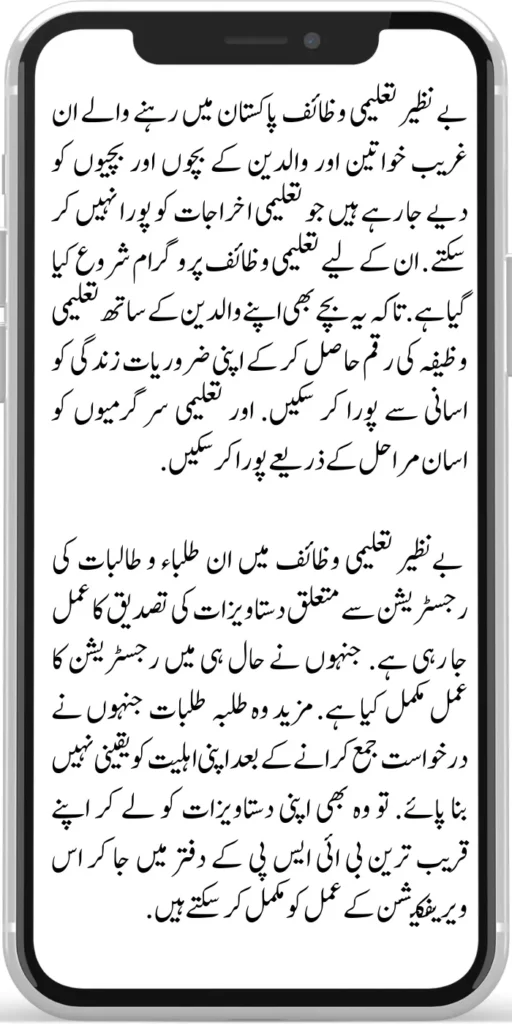 Benazir Taleemi Wazaif Program 2024