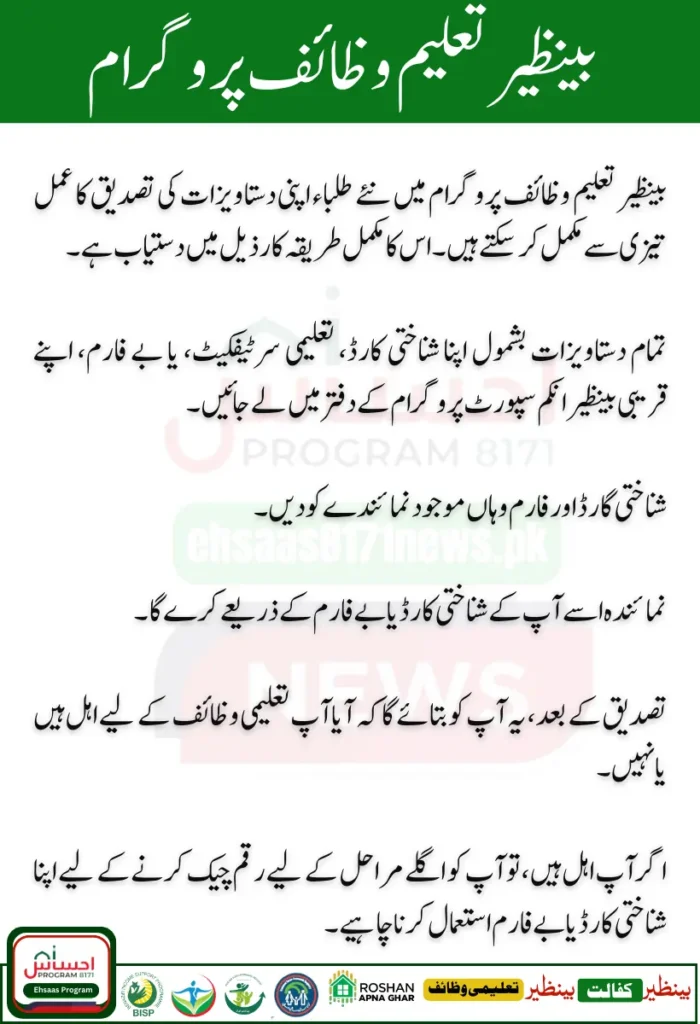 Benazir Taleemi Wazaif New Students Document Verification Process