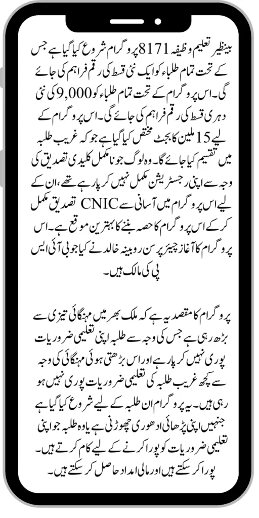 Benazir Taleemi Wazifa 8171 Program