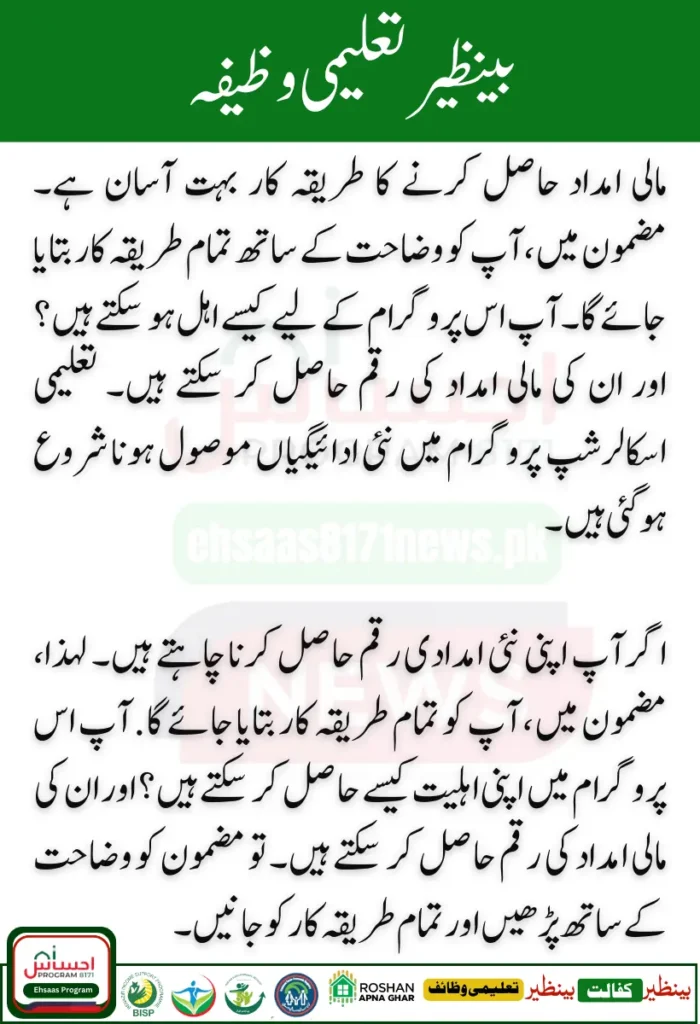 Benazir Taleemi Wazifa program: New payments have started to be received. If you want to receive financial assistance, you can apply through your online registration using your new payment CNIC of 10500.