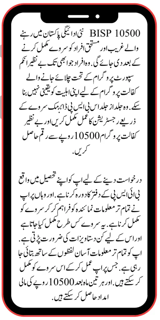 During this survey, how registration is completed and what are the required documents, all this information will be explained to you. So that you can complete your survey easily. And they can get financial assistance of Rs. 10500 from this Benazir Income Support Program.