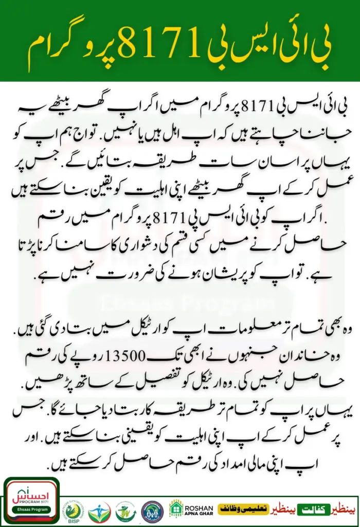 - 🔹 BISP 8171 SMS Service – Send your CNIC number to 8171 to check your eligibility & payment status.