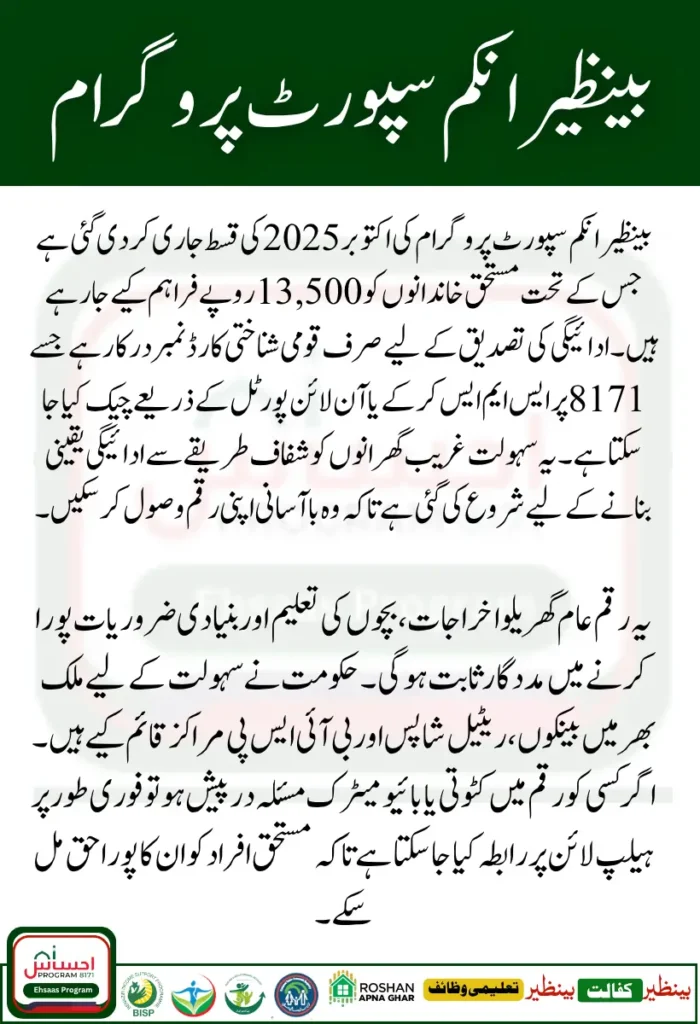 | Payment Program | BISP 8171 Benazir Kafalat October 2025 |