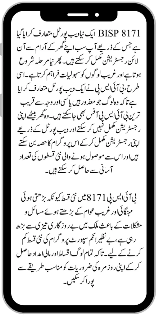 BISP 8171 A New web portal has been introduced through which you all can complete your registration online from the comfort of your home. Then the new phase starts and provides facilities for poor people. Similarly, BISP has introduced a web portal so that people who are disabled or due to any other reasons can also visit the nearest BISP office. They cannot complete their registration by sitting at home and can become a part of this program by completing their registration through the web portal and can easily get the number of new instalments received from it.