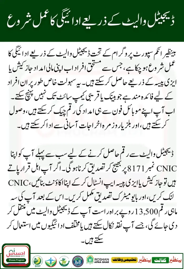 - Once your BISP account is linked, the Rs. 13,500 will be deposited into your digital wallet.