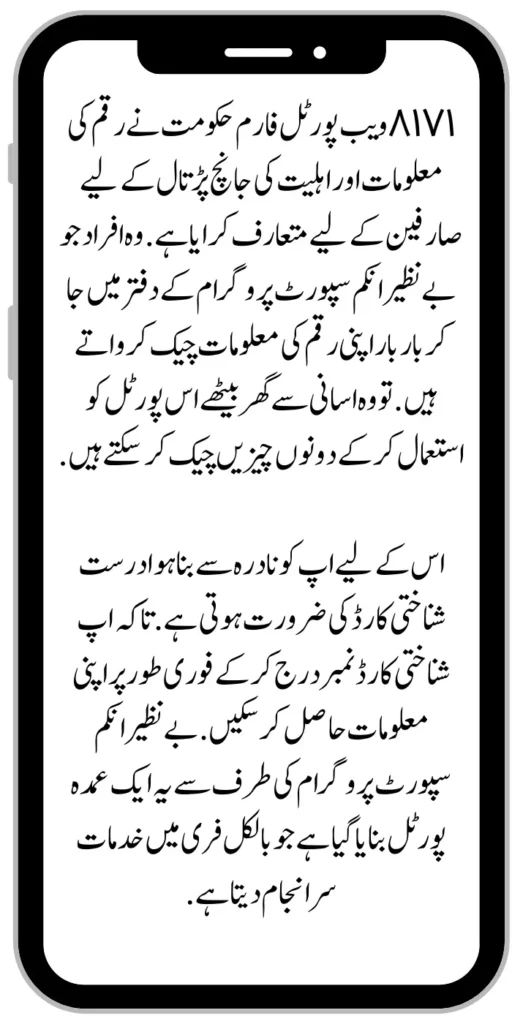 BISP 8171 web portal form the government has introduced for users to check amount information and eligibility. People who go to the Benazir Income Support Program office and check their money information repeatedly.