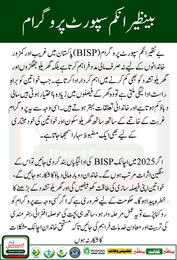 By applying these strategies, BISP 2025 and beyond can ensure financial security, women’s empowerment, and safer family environments across Pakistan.