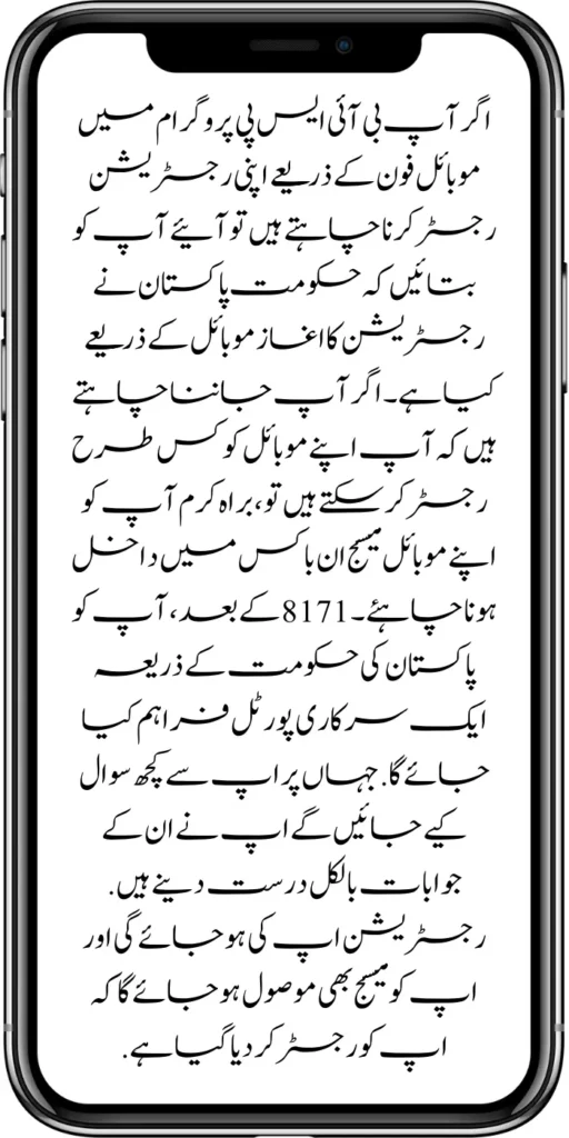 After 8171, you will be provided with an official portal by the government of Pakistan. Wherever you ask some questions, you have to give their answers exactly. Registration will be up and you will also receive a message that you have been registered.