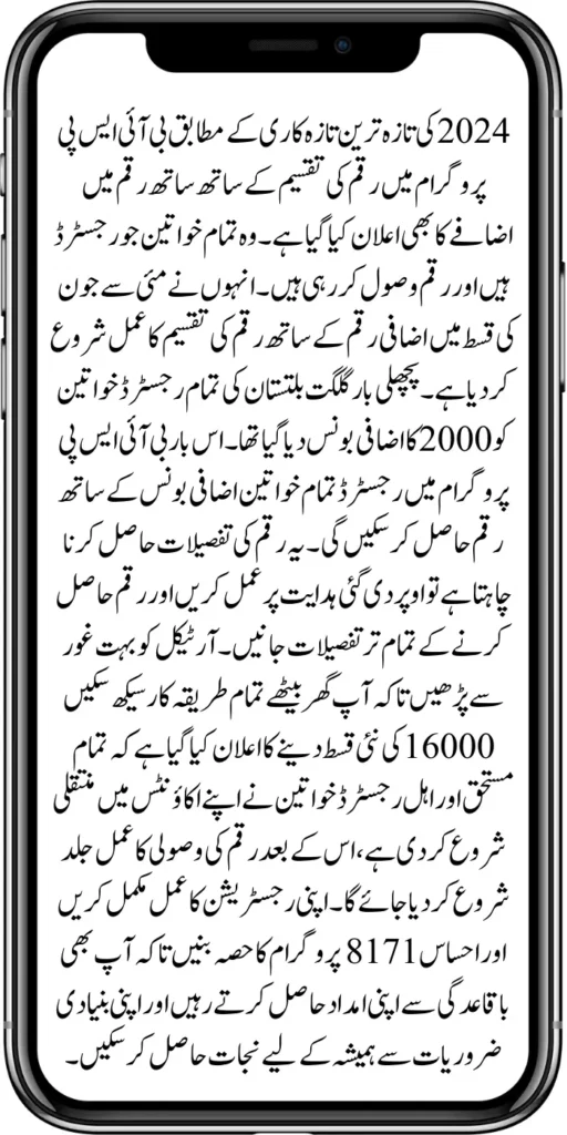 According to the latest update in 2024, an increase in the amount has also been announced along with the distribution of money in the BISP program. All those women who are registered and receiving money. They have started the process of disbursement of money with an additional amount in the May to June tranche.