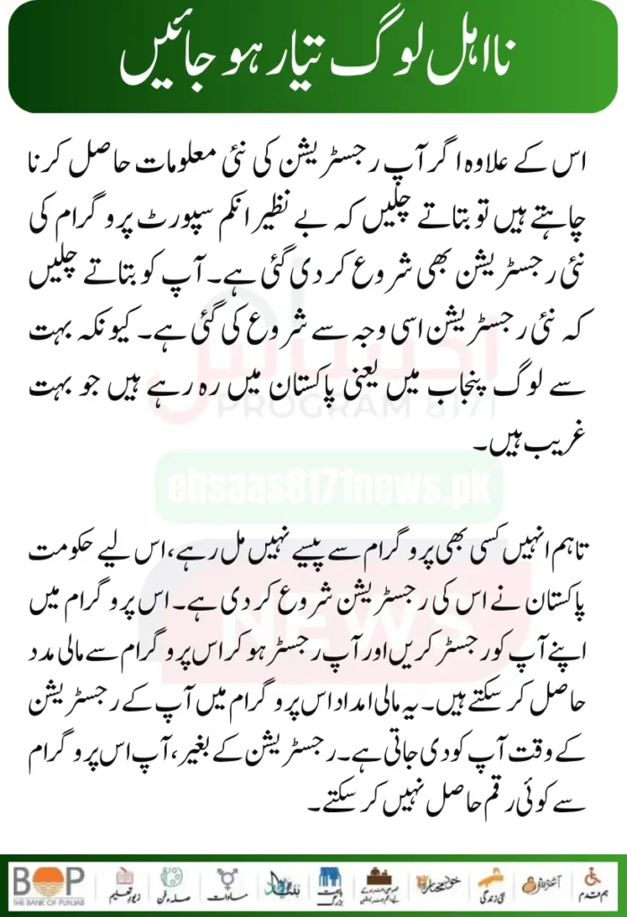 Apart from this, if you want to get new registration information, let us tell you that the new registration of the Benazir Income Support Program has also been started. Let us tell you that the new registration has been started for this reason. Because many people are living in Punjab, that is, in Pakistan, who are very poor.