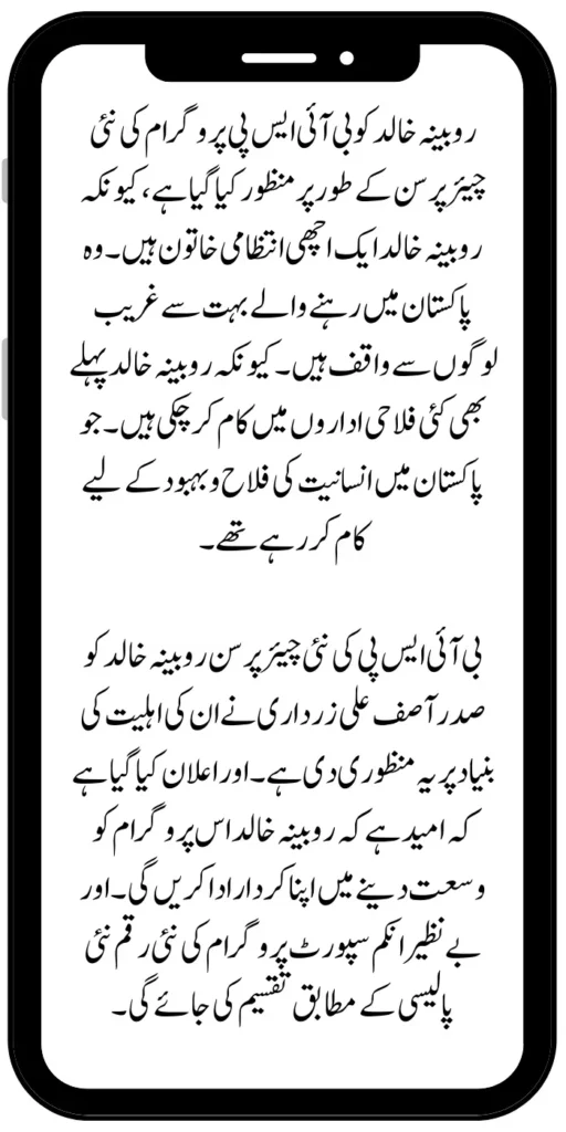 New BISP Chairperson Rubina Khalid has been given this approval by President Asif Ali Zardari on the basis of her ability. It has been announced that it is hoped that Rubina Khalid will play a role in expanding this program. The new amount of the Benazir Income Support Program will be distributed according to a new policy.