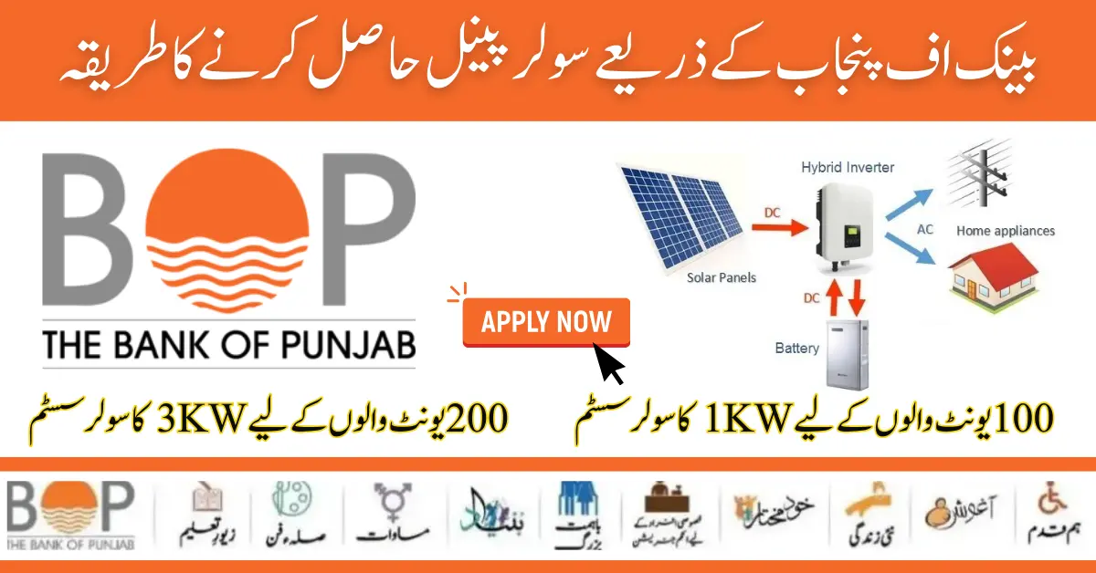 Bank of Punjab has launched a free solar panel scheme in which all those who have a monthly electricity consumption of up to 100. can become a part of this scheme by completing their 8171 Ehsaas registration. You can get panels. This solar panel scheme has many benefits. We have given you all the information about it in this article, which you can read and get all the information about it. which is very helpful for everyone.