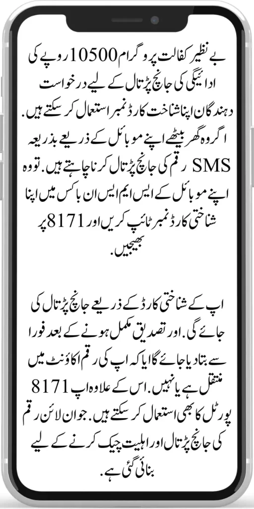 Check Benazir Kafaalat 10500 By 8171 SMS