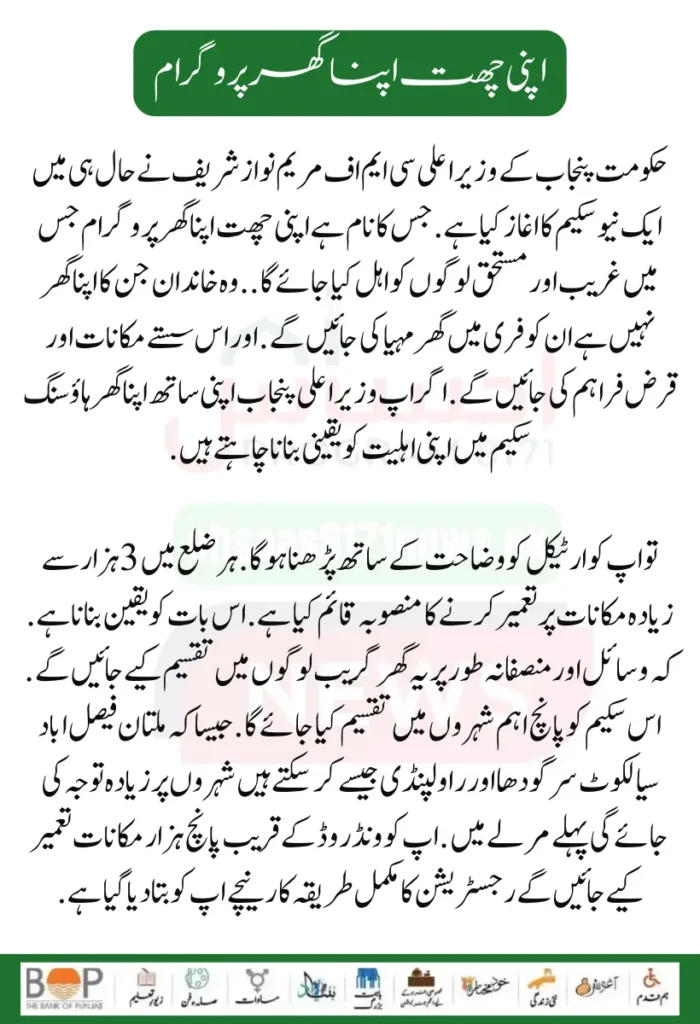 You Can Also Read It : Apni Chat Apna Ghar CM Of Punjab Maryam Nawaz