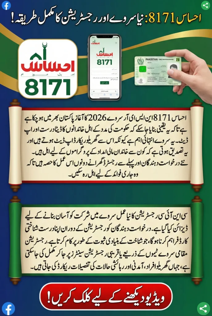 The Ehsaas 8171 NSER Survey 2026 and its CNIC registration process are crucial for families seeking government support. By understanding the registration steps, preparing the required documents, and submitting accurate information, households can secure their eligibility and benefit from programs designed to help those in need.