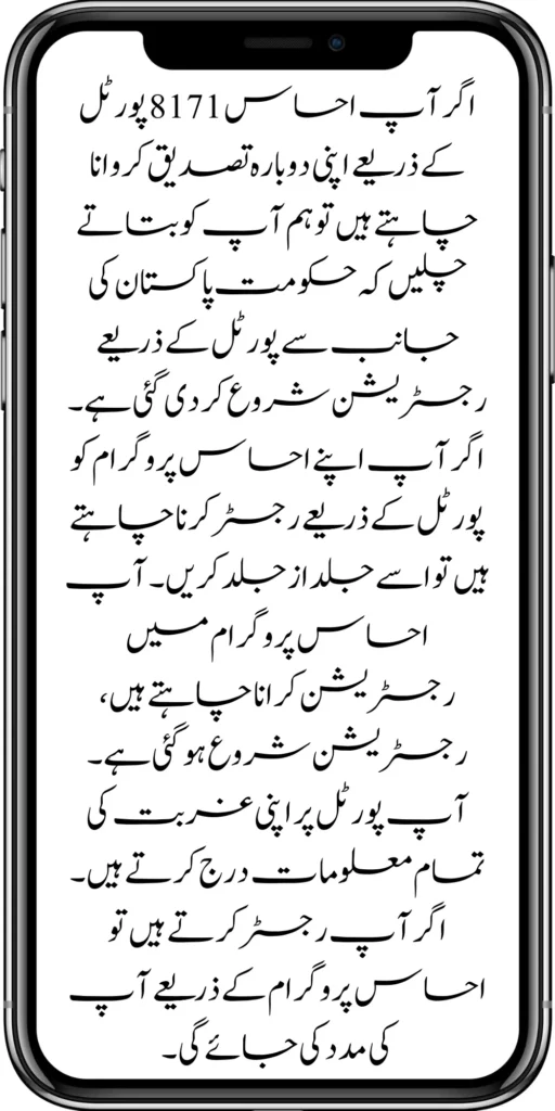 8171 Ehsaas Program is a program launched by the Government of Pakistan. This program was started by former Prime Minister Imran Khan because the situation in Pakistan had become very bad due to the slabs and Corona. Due to this, it became difficult for the poor people to live.