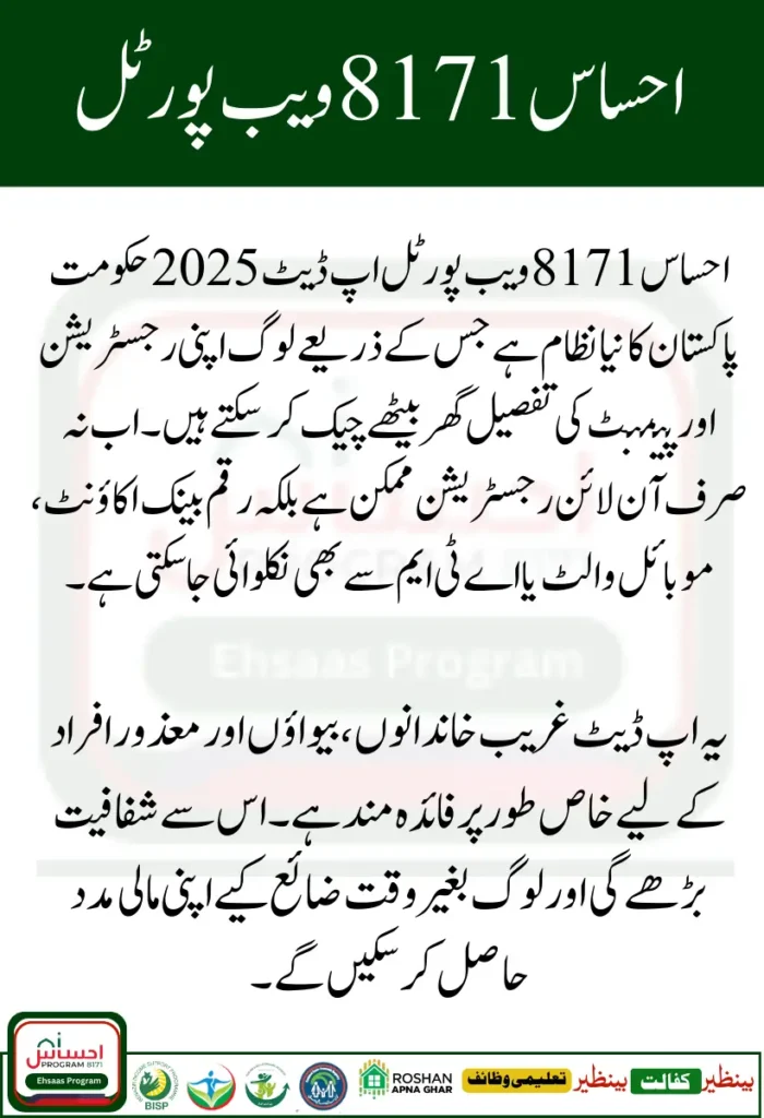 Ehsaas 8171 Web Portal Update 2025 New Registration Process