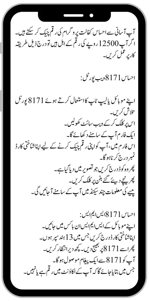 Ehsaas Kafaalat 12500 amount can be checked in your account easily in two new ways. About Which all the explanations are given to you below. If you want to check your money with a test at home, then follow these procedures.