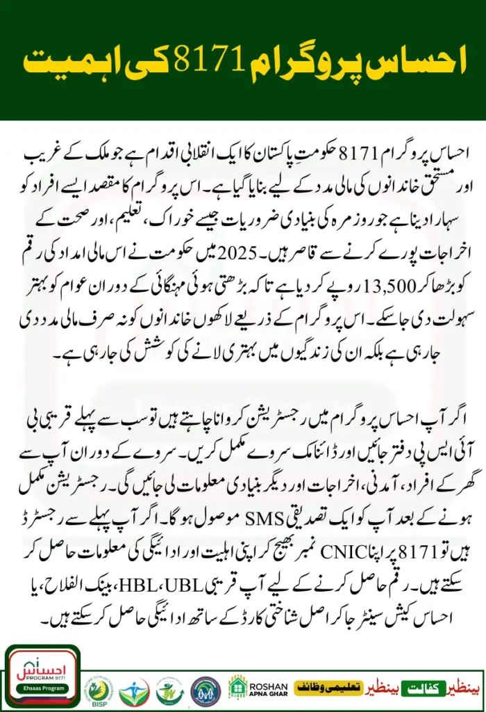 The Ehsaas 8171 Program is a vital support system for poor families across Pakistan. If you meet the criteria, donβt waitβvisit your nearest BISP centre today and register through the Dynamic Survey.