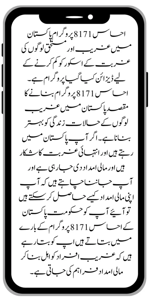 The Ehsaas program 8171 program is designed to reduce the poverty score of Pakistan’s poor and deserving people. The purpose of the Ehsaas program 8171 program is to improve the living conditions of poor people in Pakistan.