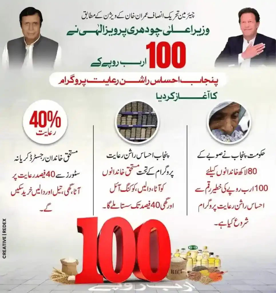 The ex-Prime Minister of Pakistan, a Former Pakistani cricket team captain, took the responsibility Of the Lower class of the country. He announced his ration raiyat program. The EX CM Punjab, Chaudhry Pervaiz Elahi, followed the vision of Mr Imran Khan and announced a 100 billion rupees package for 8 million low-income families. This initiative is inactive, but during the budget session 2024 , June PMLN announced to re-initiate the ration initiative in June. The benefits are as follows.