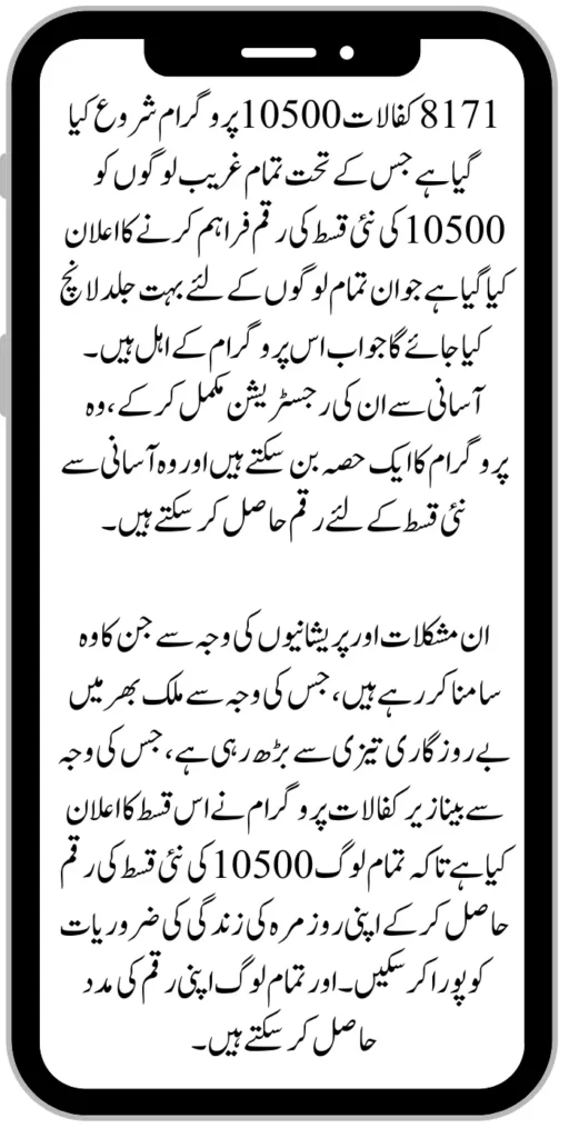 The 8171 Kafalat 10500 has been started, under which a new instalment of 10500 is being started to be given to all the poor people, all of you can be a part of this program by completing your registration easily.We have given you all the information about it in this article which you can read to get all the information about it.