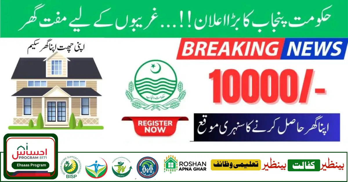 The Punjab government has introduced the Apni Chhat Apna Ghar coin for the poor and deserving people. People who are homeless. Those who do not have their own house to live in, then they should be a part of this scheme and get a free house from the government. All information related to the application will be given to you. You can also complete your application by filling it out. One lakh houses will be provided only to one lakh families who meet the eligibility criteria. For more information visit our website 8171 BISP Ehsaas.