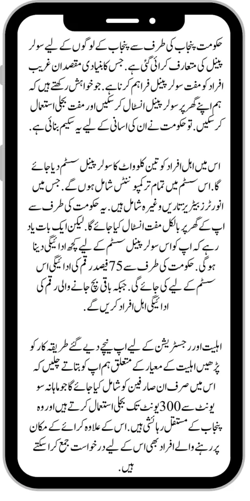 The government of Punjab has introduced solar panels for the people of Punjab. The main purpose of this is to provide free solar panels to these poor people. Those who wish that we can install solar panels on our house and use free electricity. So the government has made this scheme for their convenience. Eligible people will be given a solar panel system of three kilowatts.Β