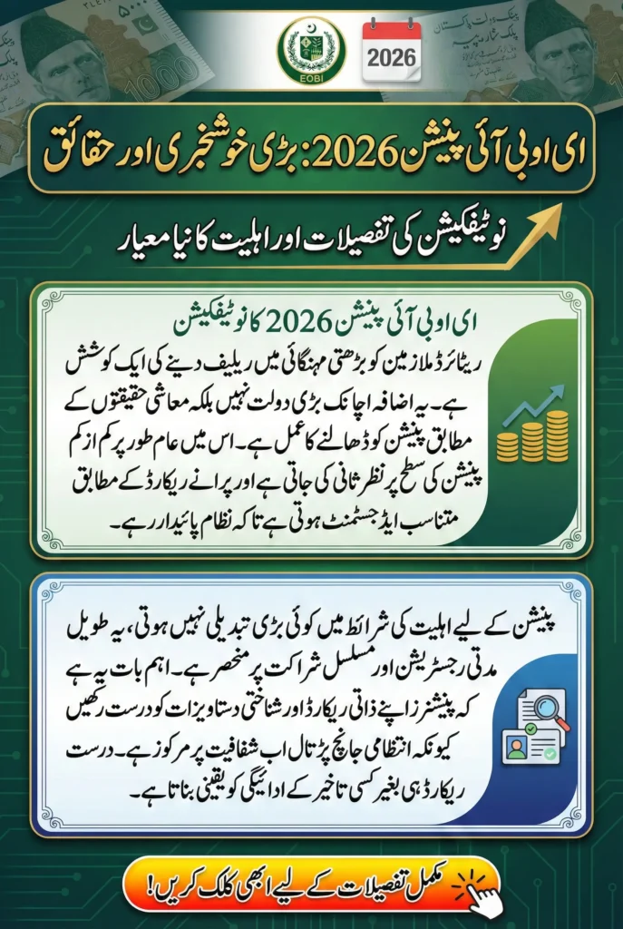 Eobi Pension Increase Notification 2026 Retirement income matters deeply to workers who spent decades in private sector jobs expecting stability after their active employment years. Whenever pension adjustments are discussed, people immediately look for practical details because monthly income planning depends on them. The conversation around pension changes heading into 2026 reflects this same concern, as pensioners want to understand whether their payments will improve and how eligibility conditions may influence their entitlement.