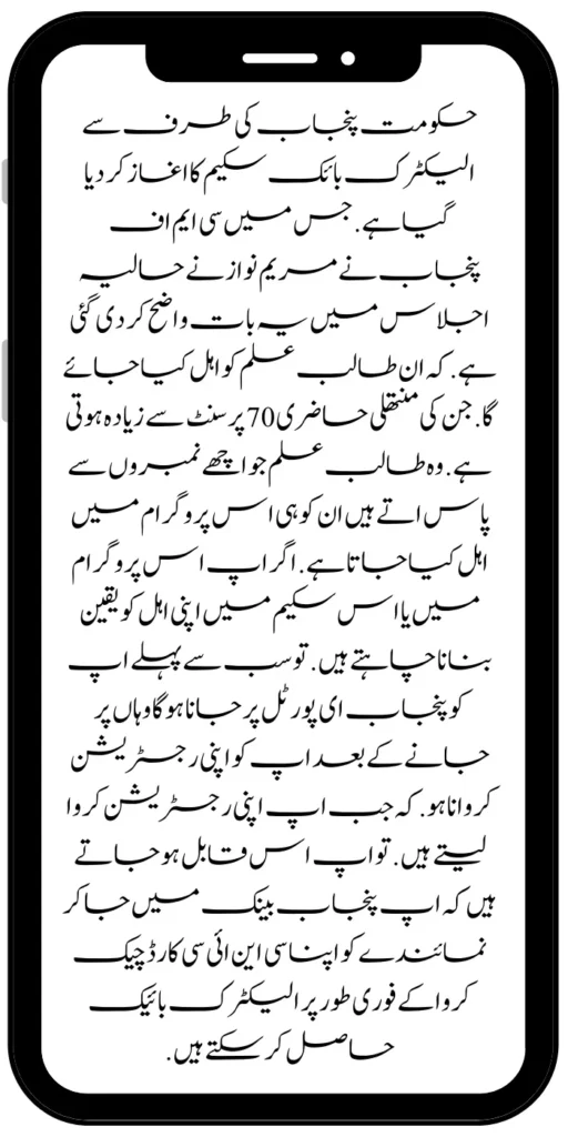 The electric bike scheme has been started by the Punjab government. Which CM of Punjab Maryam Nawaz has made this clear in a recent meeting. that these students will be qualified. Whose monthly attendance is more than 30 percent. Only those students who pass with good marks are qualified in this program.