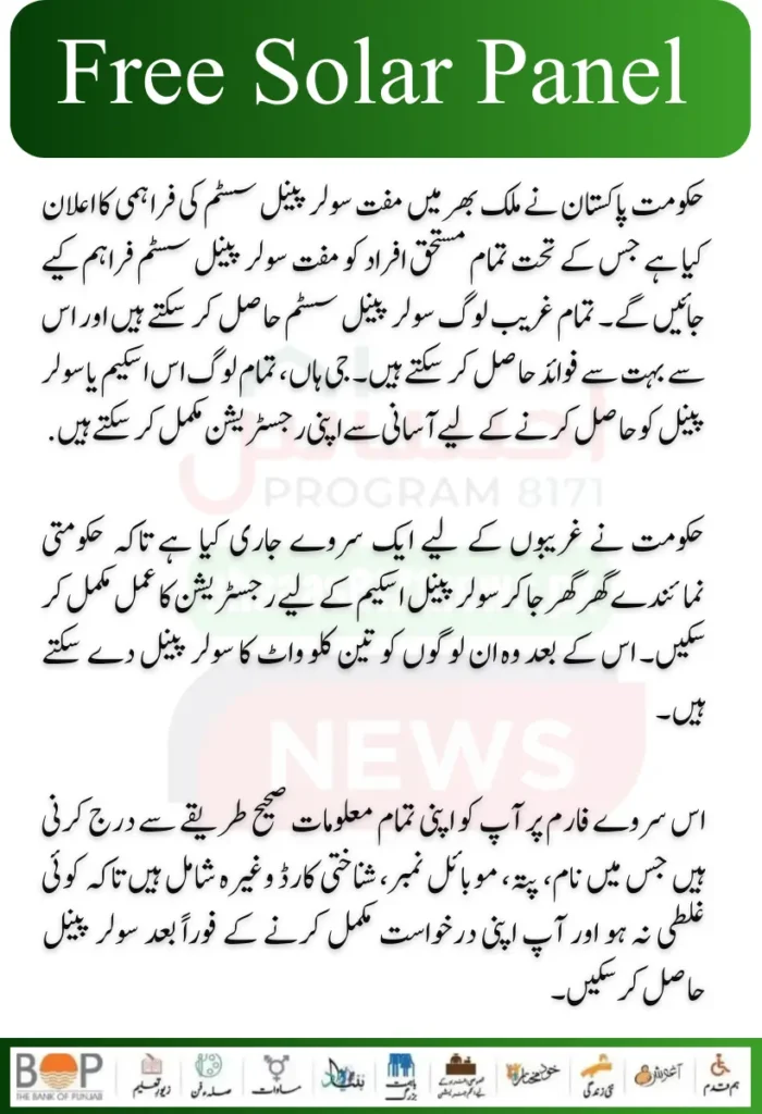 Note ; If you want to ensure yourself in the Punjab Solar Panel Scheme sitting at home. So the complete procedure will be told to you. How can you ensure your eligibility? For more information you can visit Ehsaas 8171 News PK to get complete information.