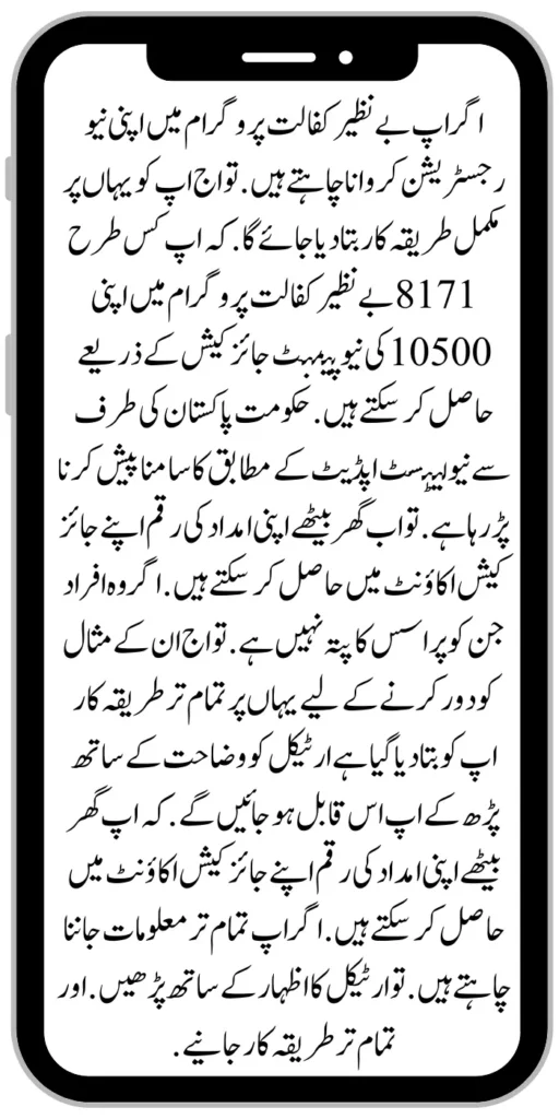 If you want to register yourself in the sponsorship program through SMS. So you will be informed here. How you can register yourself through Benazir Kafalat Program 8171 and get a new amount of 10500 in your Benazir Kafalat Program. Those families will be told to you. Read the article with an explanation.