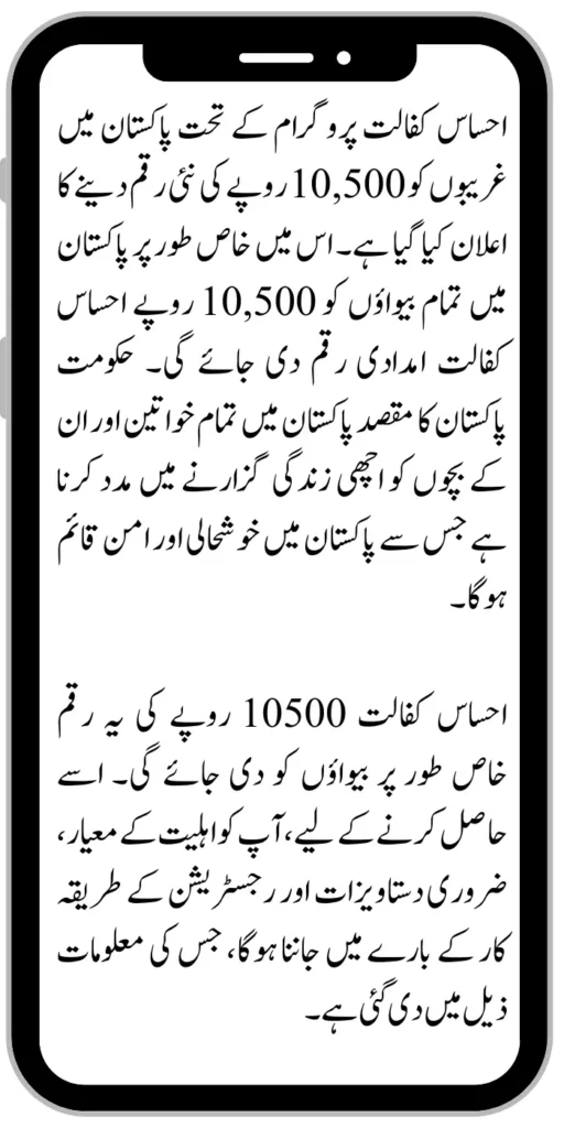 The Ehsaas Kafaalat program has been announced to give a new amount of Rs 10,500 to the poor in Pakistan. In this, especially all the widows in Pakistan will be given Ehsaas Kafaalat aid amount of Rs 10,500. The government of Pakistan aims to help all the women and their children in Pakistan to live a good life, which will establish prosperity and peace in Pakistan.