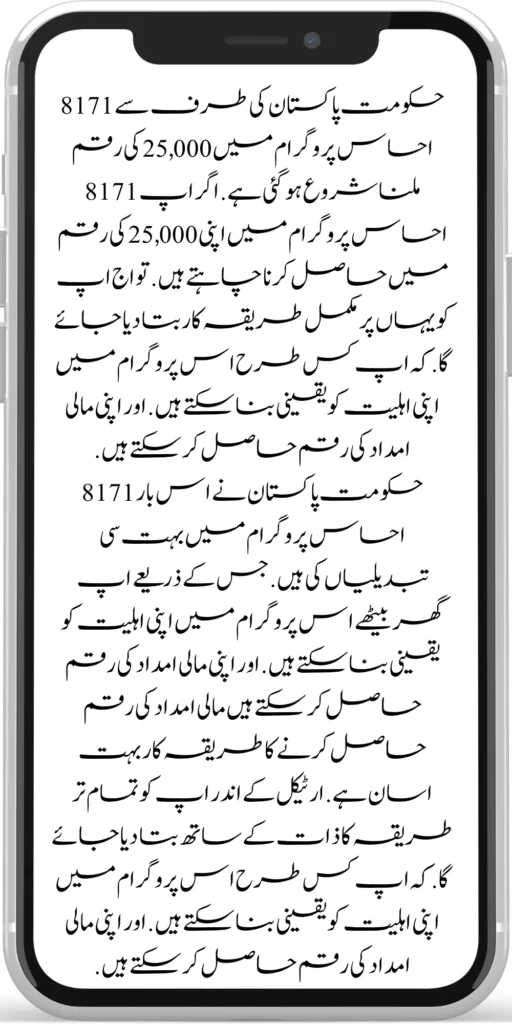 An amount of 25,000 has started to be received by the government of Pakistan in the 8171 Ehsaas program. If you want to get 8171 Ehsaas program in your amount of 25000. So you will be told the complete procedure here. How you can ensure your eligibility in this program. And can get their financial aid money.