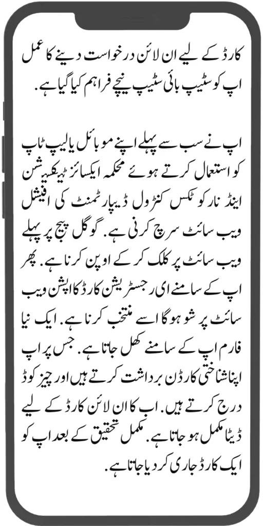 This registration card is provided online on the official website of Mahukma Exercise Taxation and Narcotics Control.