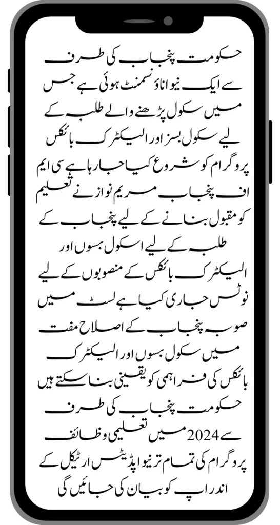 The Government of Punjab has made a new announcement. In which school buses and electric bike programs are being started for school-going students. CM of Punjab Maryam Nawaz has issued a notice for the projects of school buses and electric bikes for the students of Punjab to popularize education. Reforms in the province of Punjab can ensure the provision of free school buses and electric bikes. All the new updates of the education scholarship program by the Punjab government in 2024 will be explained to you in the article.