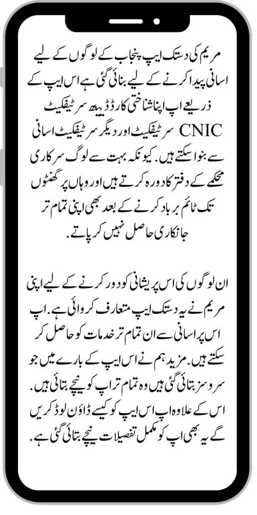 Maryam’s Dastak App is made to make life easy for the people of Punjab. This app lets you easily create your ID card, death certificate, CNIC certificate, and other certificates. Many people visit the government department’s office,Β and even after wasting hours there, they are not able to get all their knowledge.