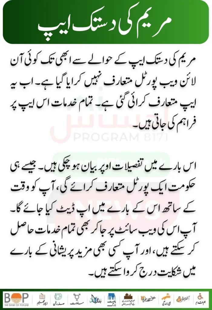 No online web portal regarding theΒ Maryam Ki Dastak app has yet been introduced. Now, the app has been introduced. All the services are provided on this app.Β